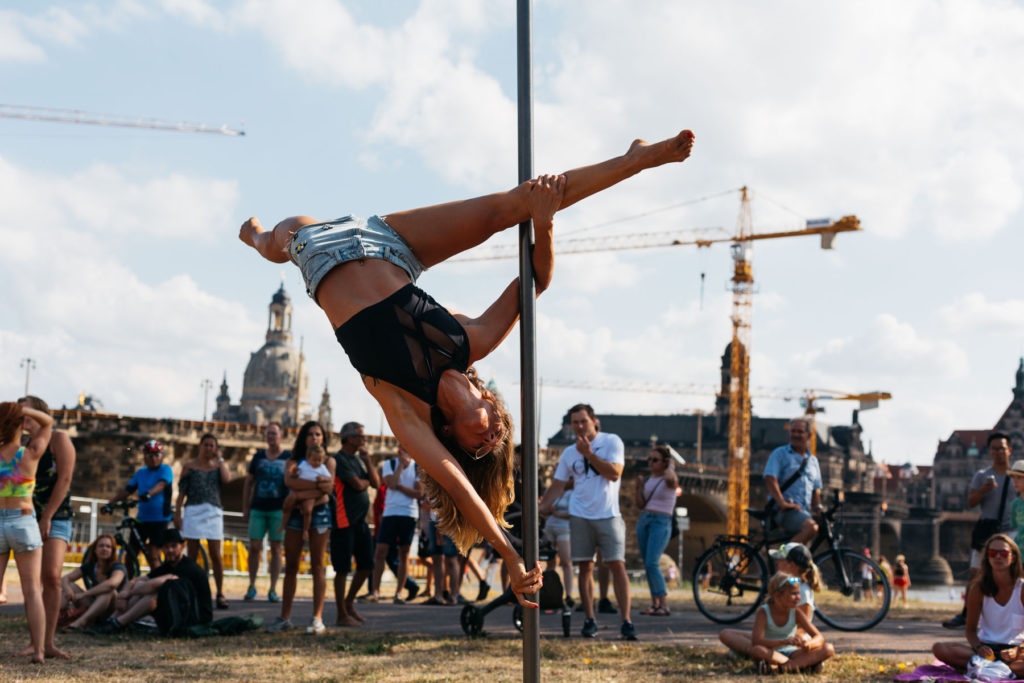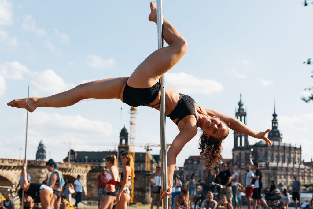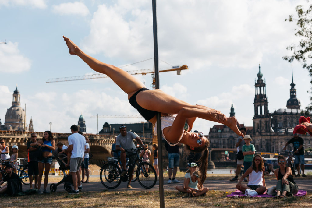 Unter der Sonne, mit dem atemberaubenden Canalettoblick und bei guter Musik haben wir mit vielen Pole Tänzer*innen aus Dresden und Umgebung gemeinsam getanzt, uns ausprobiert und inspirieren lassen.